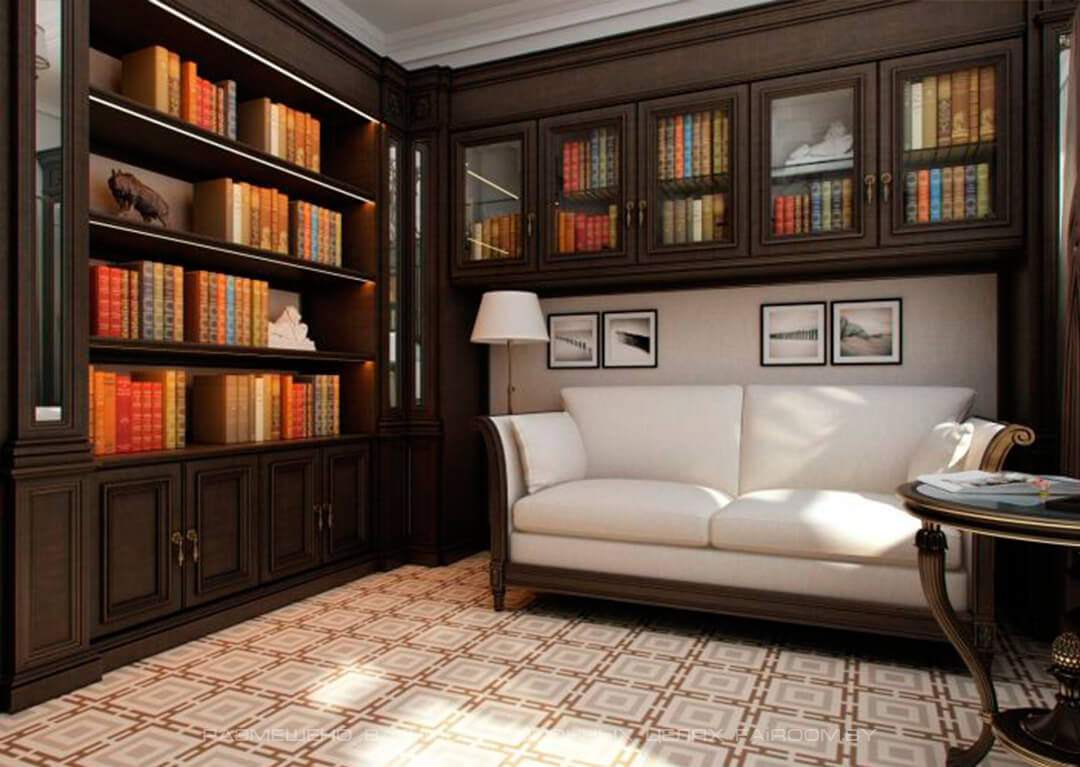 Рабочий кабинет или библиотека дома – это идеальное место для уединения от членов семьи или коллег, где можно спокойно поработать с бумагами, построить планы или просто привести мысли в порядок. Выполненные в классическим стиле шкафы для кабинета, всегда отличает некий аристократизм и чувство меры. Рабочий кабинет может быть выполнен в разных стилях: роскошном итальянском, строгом английском, современном минималистском или любом другом по вашему вкусу.